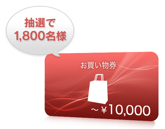 キャンペーン期間中のお買い物金額が累計20,000円(税抜)以上(*)のお客様で、応募エントリーをされたお客様を対象に抽選会を実施!総勢1,800名様に、ソニーストアのお買い物で使える「お買い物券」をプレゼントいたします。日頃の感謝をこめて、最高10,000円分!