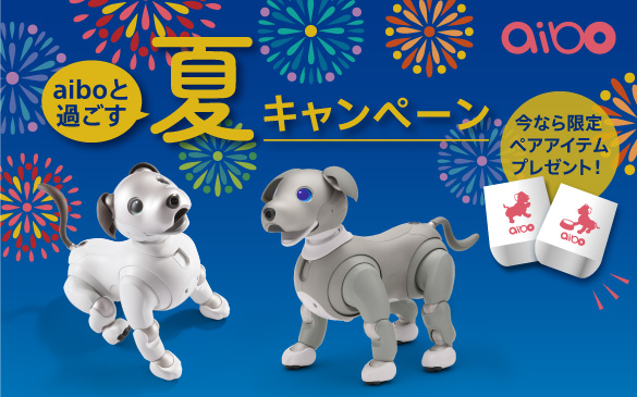 ソニーストアオンラインおよび全国5か所のソニーストアの店舗では、2021年7月15日(木)11:00から2021年9月27日(月)11:00まで、ソニーのエンタテインメントロボット“aibo”(アイボ)を購入されるお客様を対象とした『aiboと過ごす夏キャンペーン 〜今なら限定ペアアイテムプレゼント〜』を実施します。