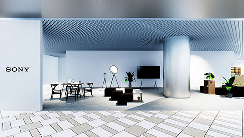 「動画配信スタジオ」は新商品紹介、イベントやトークショーをはじめとするオンラインイベントの配信機能を備えた本格的な動画配信スペースです。