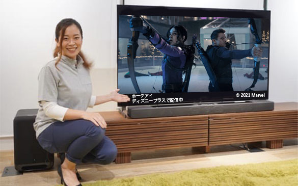 作品の配信開始を記念して、ソニーストア直営店舗では『ホークアイ』の一部映像も、ソニーの高画質・高音質の機器でお楽しみいただけるホームシアター体験会を実施します。