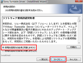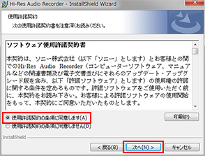 内容を確認後、ご納得していただけた場合は、[使用許諾契約の条項に同意します]を選び[次へ]をクリックしてください。