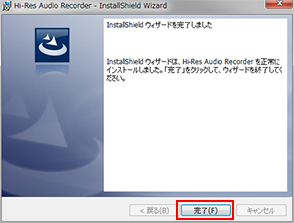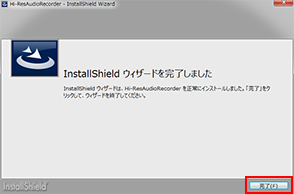 インストールウィザードが完了しました。