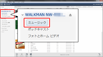 本手順では、ウォークマン内の楽曲の取り込みを例にご説明します。