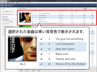 複数の楽曲を選択したい場合は、キーボードの[Ctrl]キーを押しながら楽曲をクリックしてください。