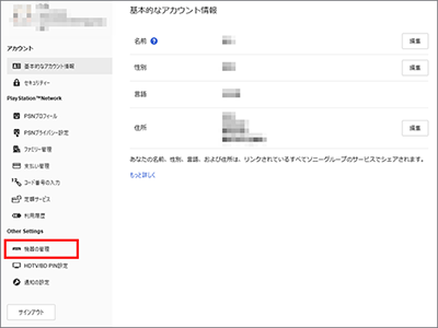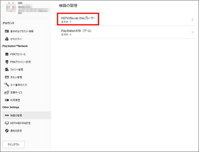先ほど登録したPlayStation Network(PSN)にサインインし、[機器の管理]をクリックします。
