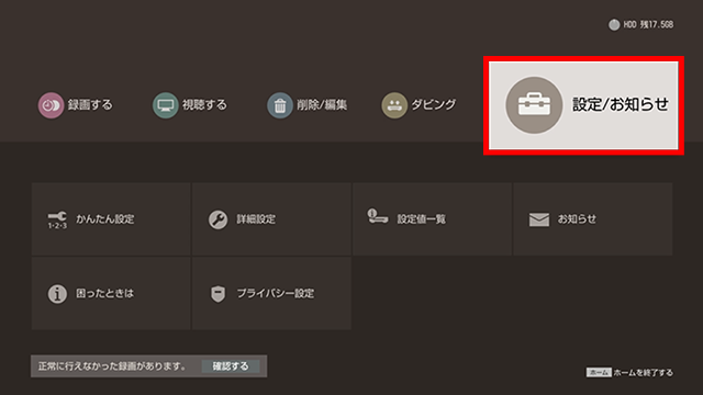ブルーレイディスクレコーダー付属リモコンの[ホーム]ボタンを押す