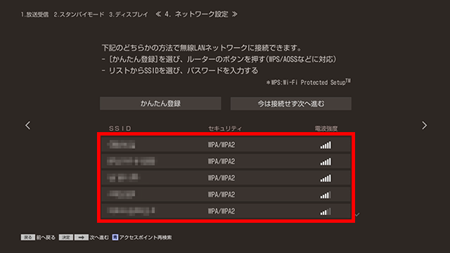 ネットワーク検索が完了したら、[かんたん登録]を選択する