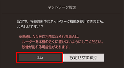 「設定中、接続診断中はネットワーク機能を使用できません。よろしいですか?」と表示されたら、[はい]を選択します。