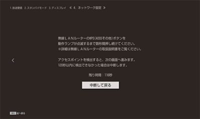 画面が切り換わったら、無線LANルーターのWPSボタンを数秒間押し続ける