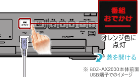SDカードリーダー/ライターに挿入されたmicro SDカードを認識すると、「番組おでかけ」ボタンが白く点灯します。