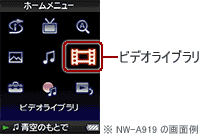 ウォークマンの[ビデオライブラリ]から再生したい映像を選び、再生します。