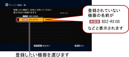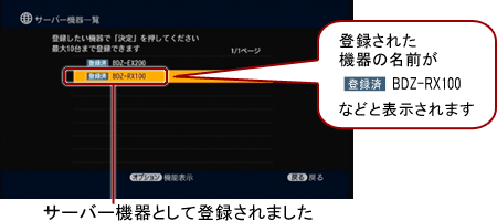 以下の手順でブルーレイディスクレコーダーをサーバー機器に登録し、録画先になるよう設定します。
