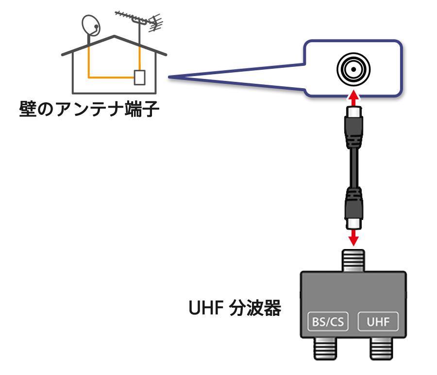 壁のアンテナ端子から接続してテレビを受信している場合の接続方法をご案内します。
