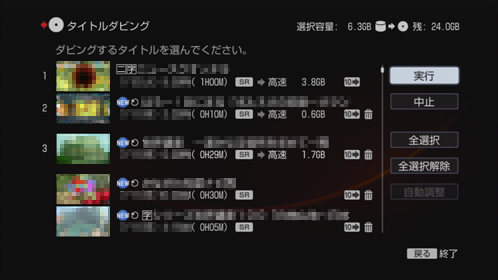 ディスクの残量に応じてダビングモードを自動で調整します。ディスクの空き容量が不足しているときに選べます。