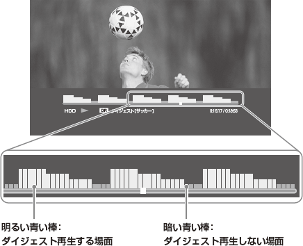 - 外付けUSBハードディスクのタイトルもダイジェスト再生できます(対象製品:BDZ-AX2700T / AT970T / AT950W)。