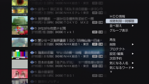 18歳未満視聴禁止またはより厳しい視聴制限のあるタイトルは、視聴年齢制限されていると表示されません。オプションメニューの[視聴制限一時解除]で制限を解除してください。