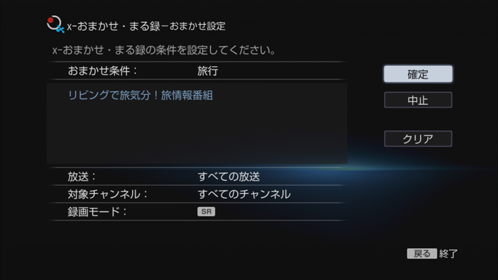 [ビデオ]>[x-おまかせ・まる録]>[新規登録]を選び、《決定》ボタンを押す。