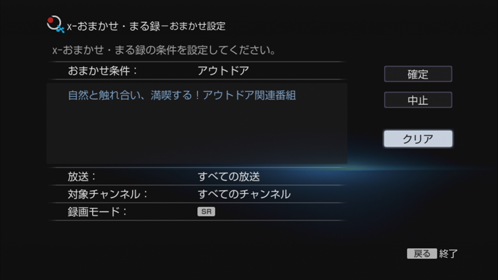 [おまかせ条件] で自動録画したい番組の情報を登録します。キーワードは複数登録できます。