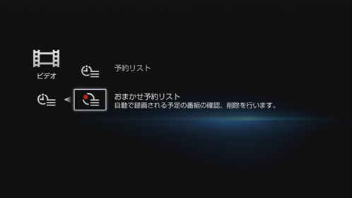 自動録画の録画条件で抽出された番組や、本機が探し出したおすすめ度の高い番組など、自動で録画される予定の番組を60件まで確認できます(おまかせ予約リスト)。