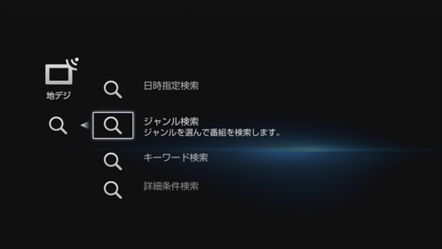 [ジャンル検索]/[キーワード検索]/[詳細条件検索]のどれかを選び、《決定》ボタンを押す。
