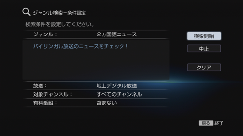 | ジャンル/キーワード | [新規登録]で登録した条件に合った番組(お気に入り番組表)を最大200件まで表示します。 |