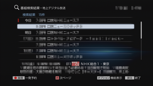 日付、時間、チャンネルのどれかを設定すると、検索が行われます。