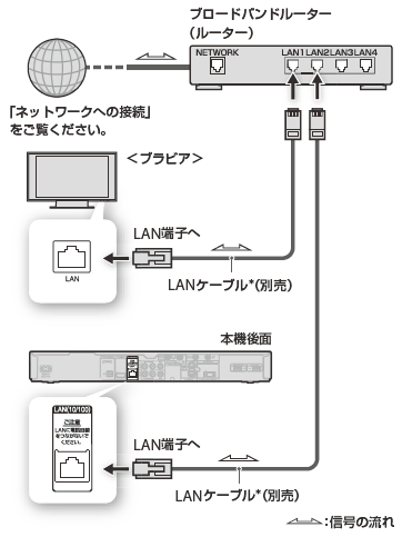 <ブラビア>と本機をネットワークにつなぐ。