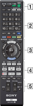 *1 凸(突起)が付いています(数字ボタンは「5」のみ、《チャンネル+/−》は「+」のみ)。操作の目印としてお使いください。