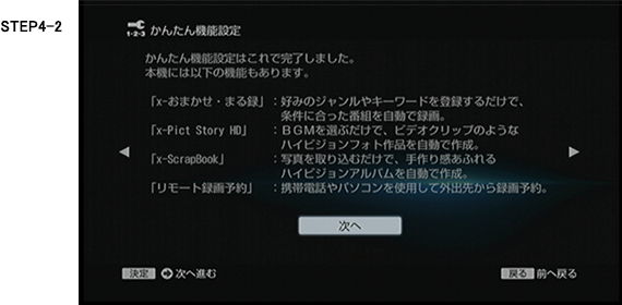 かんたん機能設定はこれで完了しました。「決定」ボタンを押します。