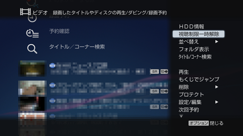 《オプション》ボタンを押して[視聴制限一時解除]を選び、制限を解除してください。