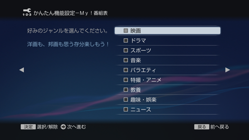 好みのジャンルを選び、《決定》ボタンを押します。(複数の項目を選択できます。)