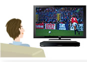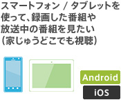 「家じゅうどこでも視聴」スマートフォン / タブレットを使って、家のなかの好きな場所で録画した番組や放送中の番組をハイビジョン画質で見られます。