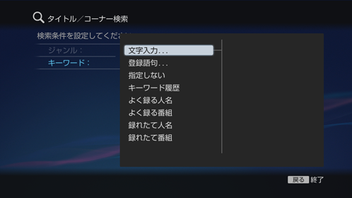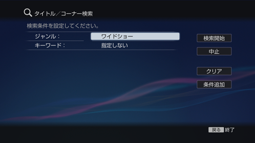 本機/外付けのハードディスクに録画した映像(タイトルやコーナー)を、キーワードなどの条件で検索できます。