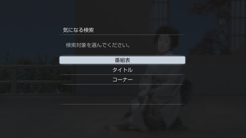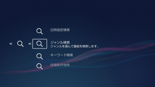 [ジャンル検索]/[キーワード検索]/[詳細条件検索]のどれかを選び、《決定》ボタンを押す。