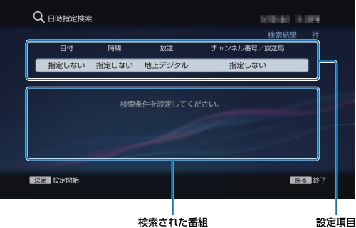 日付、時間、チャンネルのどれかを設定すると、検索が行われます。