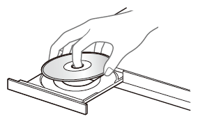 《開/閉》ボタンを押すと、ディスクトレイが開きます。ラベル面を上にしてディスクを入れてください。両面ディスクの場合は、再生したい側を下にして入れてください。