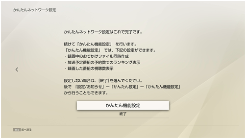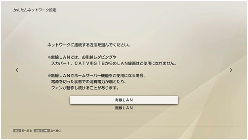 - [設定/お知らせ]>[かんたん設定]>[かんたんネットワーク設定]を選び、《決定》ボタンを押す。