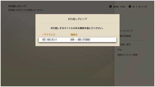- ネットワークに登録された引越し元のブルーレイディスクレコーダーを表示する。
