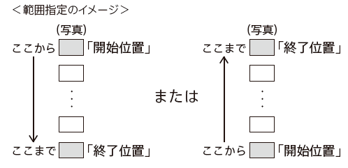 写真リスト上でダビング範囲を指定(開始位置と終了位置を設定)して写真を取り込めます。