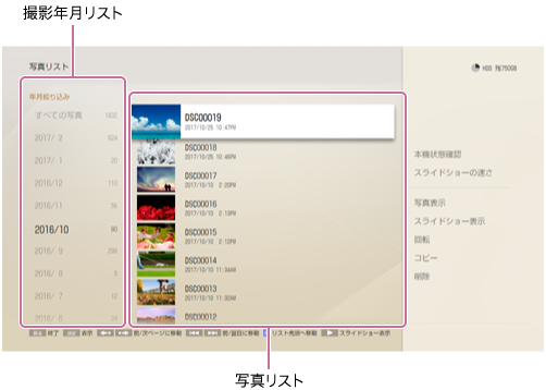 撮影年月リストで選んだ年月の写真が写真リストに表示されます。