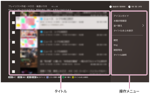 - プレイリストを作成できるのは、同じ保存先にあるタイトル同士のみです。