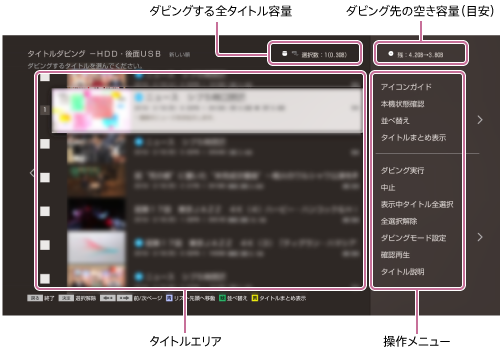 - 1度のダビングで選べるタイトルは99個までです。