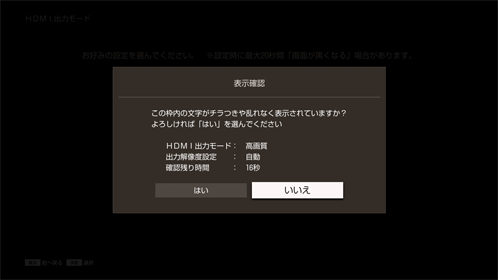 上記の画面で[いいえ]を選び、テレビの接続と設定を確認してください。