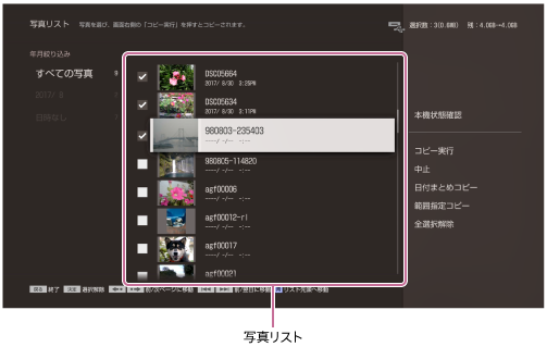 手順3で選んだ写真と撮影した日付が同じ写真をまとめてダビングします。