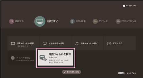 - [視聴する]>[録画タイトルを視聴 前面USB]を選び、《決定》ボタンを押す。