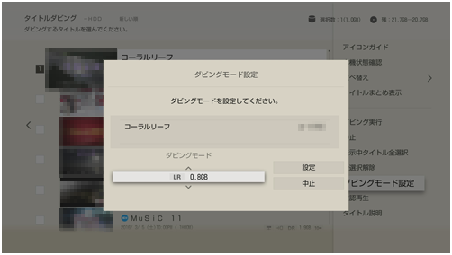 ダビングモードを変更するには、タイトルダビング画面で映像(タイトル)を選び、