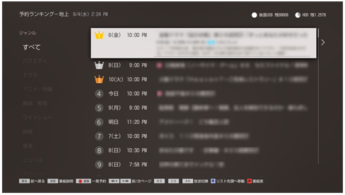 • 番組表の表示中に《赤》ボタンを押しても「予約ランキング」を表示できます。