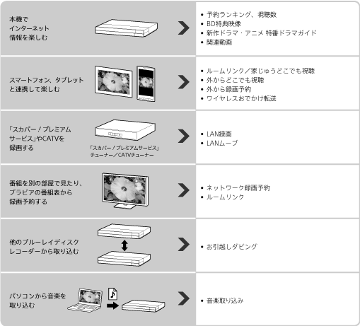 すでにインターネットにつないでいるパソコンやスマートフォンと同じルーターに本機をつなぐと、次の機能をお使いいただけます。