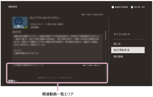 関連番組は、[この番組の出演者はこんな番組にも出演しています]および[この番組と同じジャンルで話題の番組]の一覧に表示されます。
