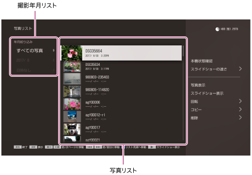 撮影年月リストで選んだ年月の写真が写真リストに表示されます。